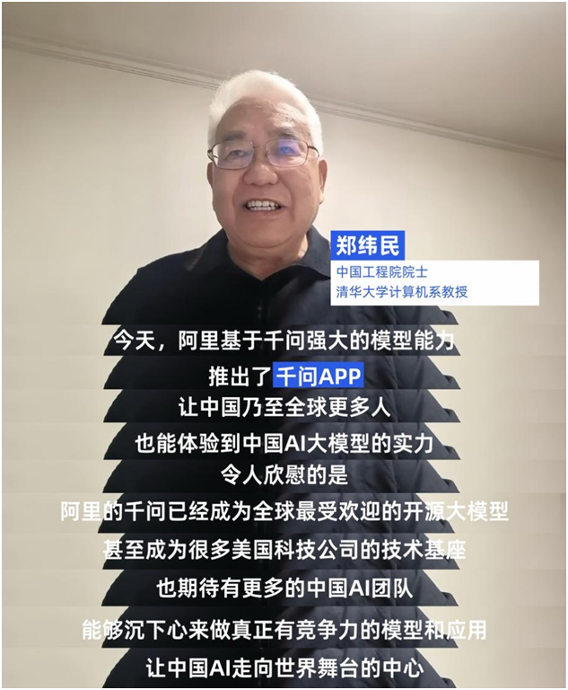 作为一名资深科研工作者,郑纬民表示自己也常使用AI来获取跨领域思路与灵感。在体验后,他特别称赞千问APP能提供高质量的对话,回答问题“更全面、更详实,逻辑性更强”,因此“对科研工作者来说很有价值”。